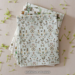Garden Conversations by Acufactum Fabrics capture quiet, gentle garden moments in delicate, hand-drawn motifs of Kerstin HeB. Little girl meet with flowers in hand and greet one another with a sense of tender openess. Among them are birds watching over a single egg in their nest. Birdhouses, threadspools, grasses, leaves and small watering cans complete the harmonious design and reveal a calm and poetic garden atmosphere.